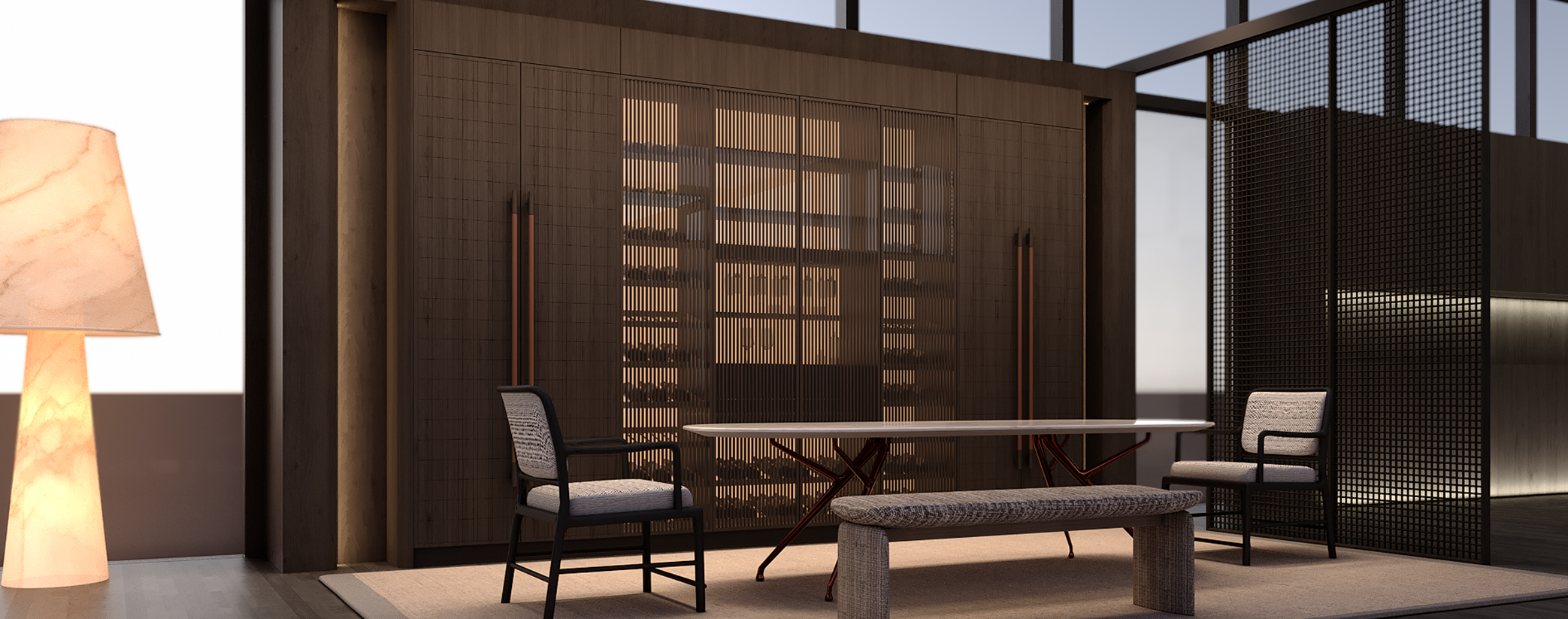 “ 桁 ”系列產(chǎn)品主要以橫向美為主,結(jié)合懸掛產(chǎn)品工藝來(lái)完成;橫向美感是一種通過(guò)巧妙運(yùn)用設(shè)計(jì)元素在水平方向上的布局與組合,創(chuàng)造出獨(dú)特而吸引人的視覺(jué)效果的設(shè)計(jì)理念。