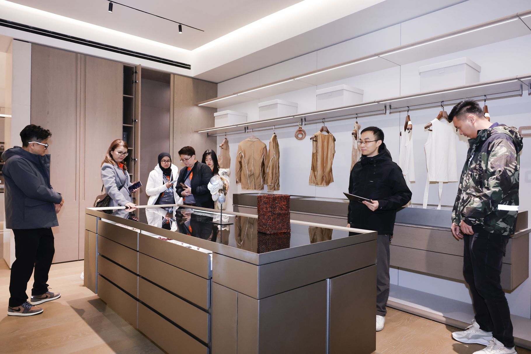 在董事長/總經(jīng)理特別助理蔡寶磊先生陪同下,Mka Cabinet Concept Sdn Bhd 高管一行先后參觀了品牌館、木文化博物館、全案設(shè)計中心展廳、智能工廠,對瑪格品牌實力、濃厚的木文化底蘊、領(lǐng)先的設(shè)計理念、嚴謹?shù)墓に嚇藴屎屯晟频漠a(chǎn)品體系給予了高度評價,對后續(xù)在馬來西亞市場的合作前景充滿信心。