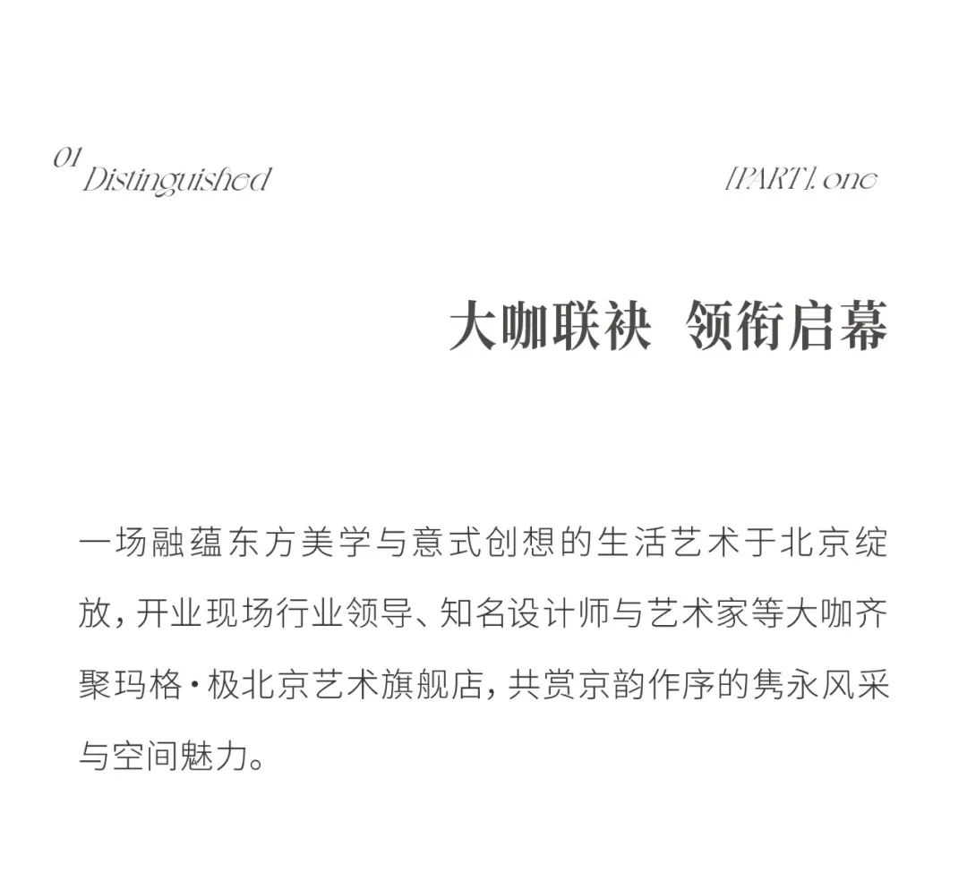 一場融蘊東方美學與意式創(chuàng)想的生活藝術(shù)于北京綻放,開業(yè)現(xiàn)場行業(yè)領導、知名設計師與藝術(shù)家等大咖齊聚瑪格·極北京藝術(shù)旗艦店,共賞京韻作序的雋永風采與空間魅力。