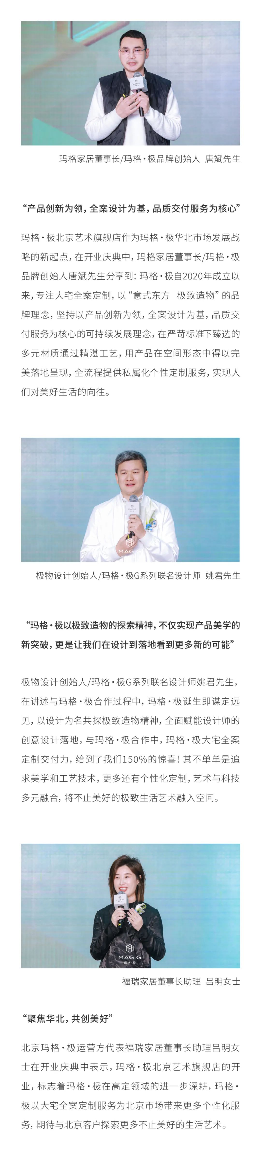 北京瑪格·極副總經(jīng)理孫志星先生,對北京市場的運營作了積極展望,期待瑪格·極北京藝術(shù)旗艦店在未來深耕北京市場,與北京的客戶們共同探索更多不止美好的生活藝術(shù)。